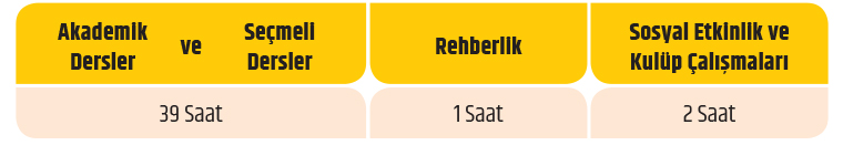 • Cumartesi günleri ise ihtiyaçlar ve planlamalar dahilinde etütler, ek dersler, pekiştirmeler, soru çözümleri, tarama / deneme sınavları veya sosyal aktivite ve sportif faaliyetler ile değerlendirilir.